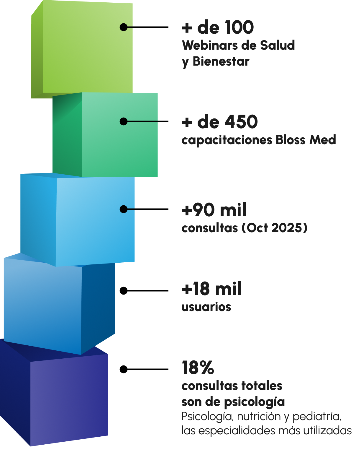 “Valoramos cómo Bloss Med nos ha permitido brindar a nuestros colaboradores un valioso beneficio que facilita el acceso a atención médica integral para ellos y sus familias, y que además, se complementa con conferencias mensuales que promueven el bienestar físico, mental y emocional.”